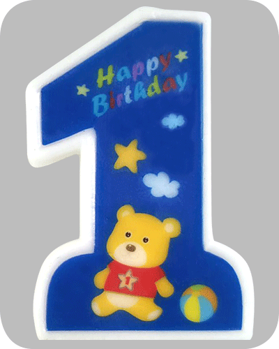 6 blauwe kaarsen op een houder. nummer: 1 (My 1st Birthday)