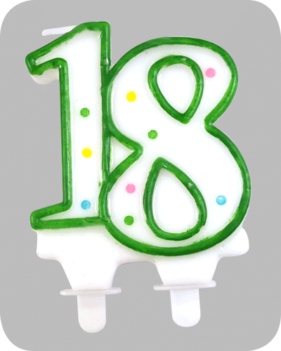 6 kaarsen nummer 18 op een houder.