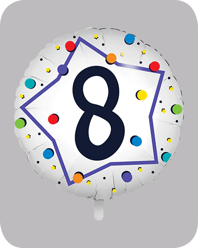 18 inch ronde folie ballonnen met opdruk. Aantal: 6 Opdruk: 8