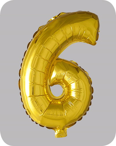 16 inch folieballonnen. Aantal: 9. Nummer: 6 Kleur: goud.