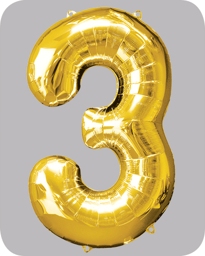34 inch folieballonnen. Aantal: 6 Nummer: 3 Kleur: goud