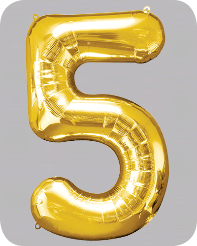 6 Gouden 34 inch folieballonnen nummer 5