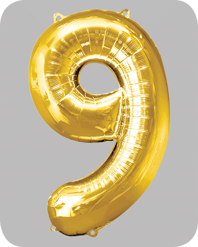 34 inch folieballonnen. Aantal: 6 Nummer: 9 Kleur: goud