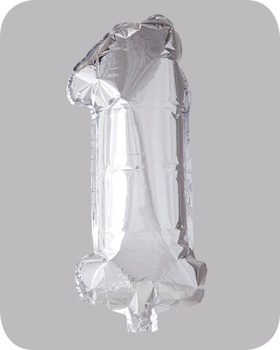 16 inch folieballonnen. Aantal: 9. Nummer: 1 Kleur: zilver