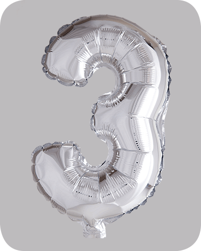 16 inch folieballonnen. Aantal: 9. Nummer: 3 Kleur: zilver
