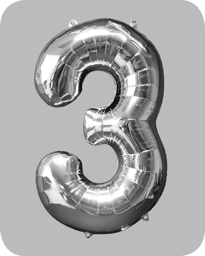 42 inch folieballonnen. Aantal: 6 Nummer: 3 Kleur: zilver