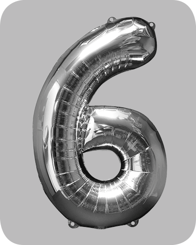42 inch folieballonnen. Aantal: 6 Nummer: 6 Kleur: zilver