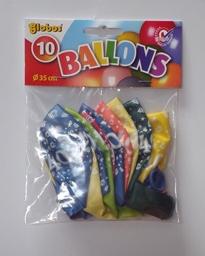 zakje met 10 ballons no. 14 assorti, rondom bedrukt met cijfer no. 40