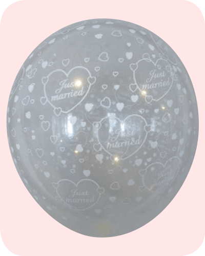 Ballon no. 12 transparant, rondom bedrukt in wit met Just Married