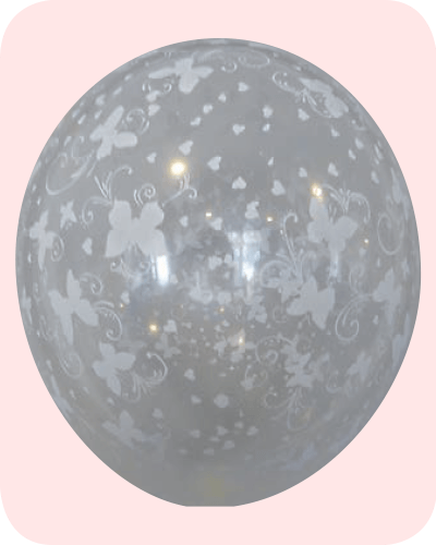 Ballon no. 12 transparant, rondom bedrukt in wit met vlinders