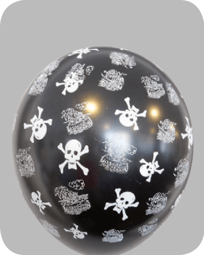 Ballon no. 14 metallic zwart, rondom bedrukt in wit met Piraat