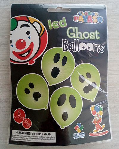 zakje met 6 ballons no. 12 bedrukt, met gekleurd LED-licht